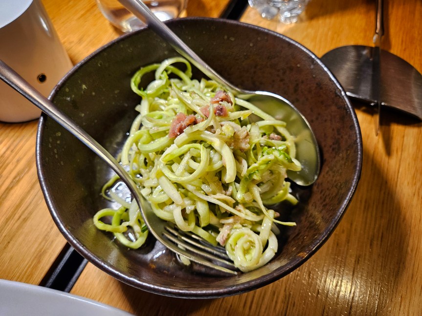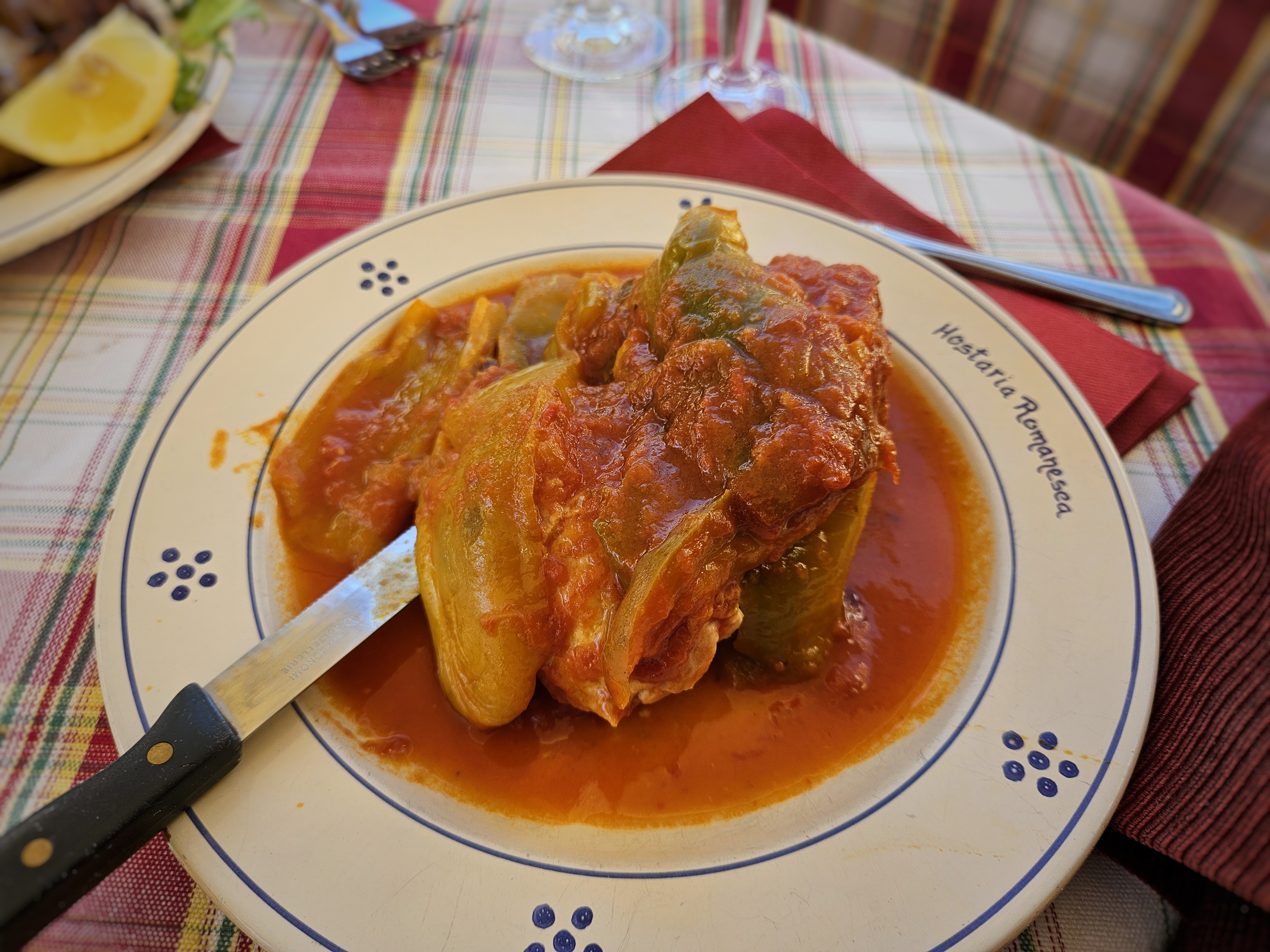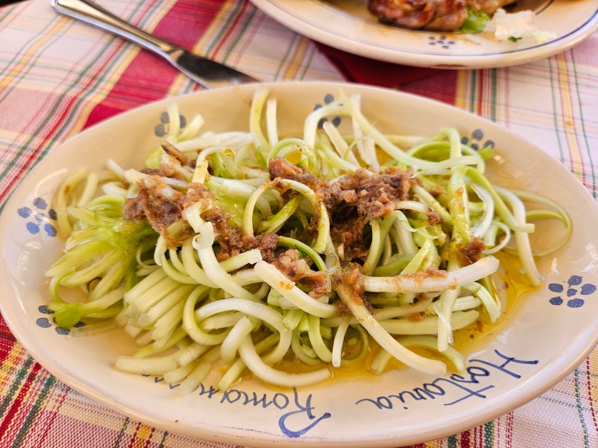 I was looking for a place to have a quick lunch before heading to Fiumicino. I found this restaurant with positive reviews on Google Maps, conveniently situated down the street from where I was staying. Il Fantino is in a quiet area within the Jewish Ghetto alongside the Portico of Octavia. There is a small indoor dining area and a beautiful courtyard adorned with hanging vines. I arrived right at the opening and was the first one there, but customers gradually started arriving, and before long, the outdoor dining area was filled up. Service was efficient and friendly.