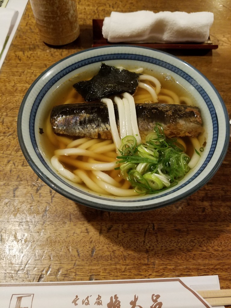 As I was craving fish, I ordered the Nishin udon (¥ 1200), a Kyoto specialty. It is a piece of dried herring placed on top of the udon. At the time, I did not know it was a dried herring. On the menu, it stated sweet stewed herring. The soup was delicious, but I did not like the herring. It was dry and chewy. I guess I was not used to eating dried fish.